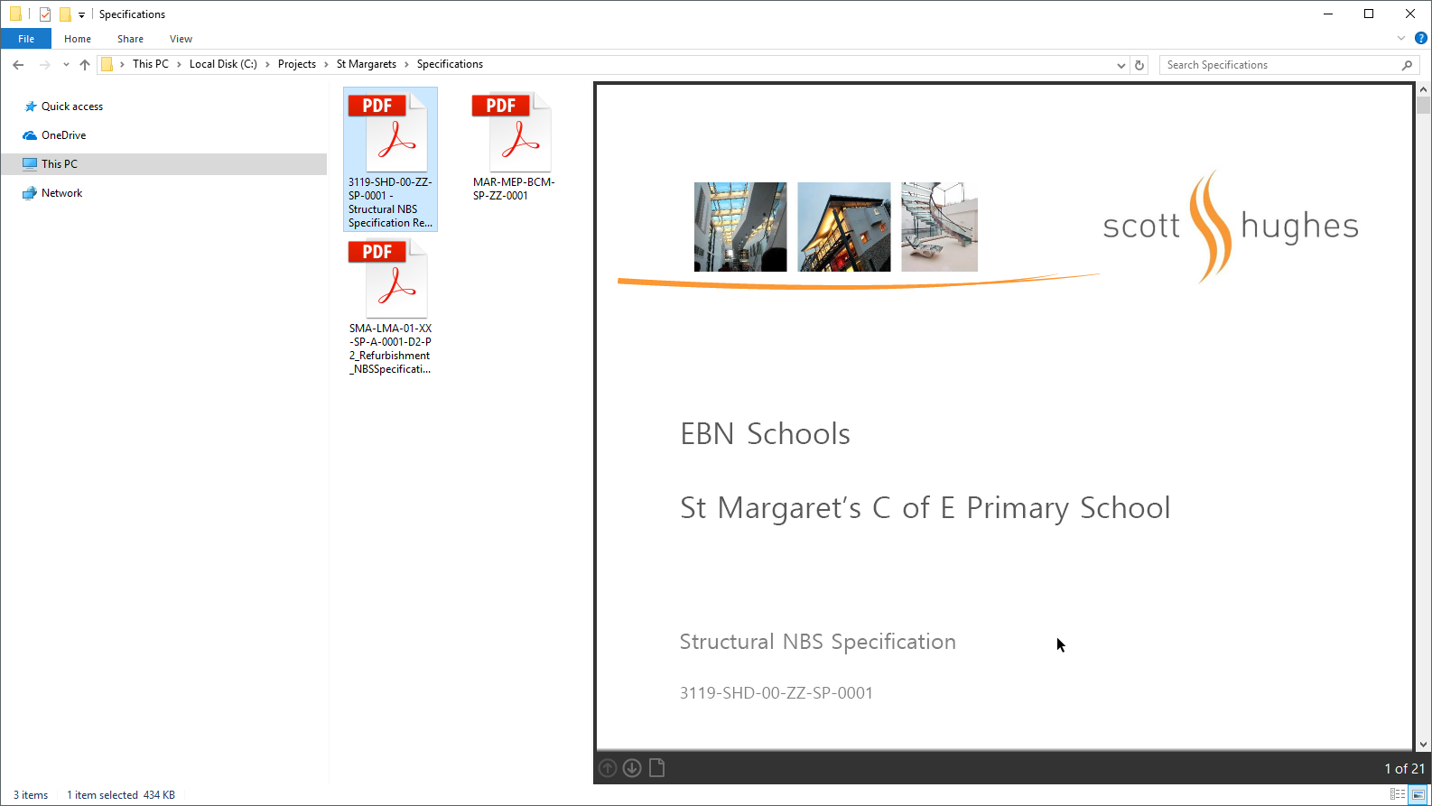 Figure 4.1 shows the three specifications for architecture, engineering services and structural engineer in .pdf format.